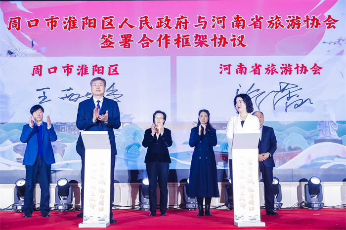 推介会上,市文广旅局、淮阳区政府主要负责人先后推介了周口文旅资源、淮阳文旅资源;市文广旅局、淮阳区政府分别与建业集团、河南省旅游协会签订了合作协议;淮阳区、西华县景区运营公司先后与省内知名旅行社代表签订了合作协议。